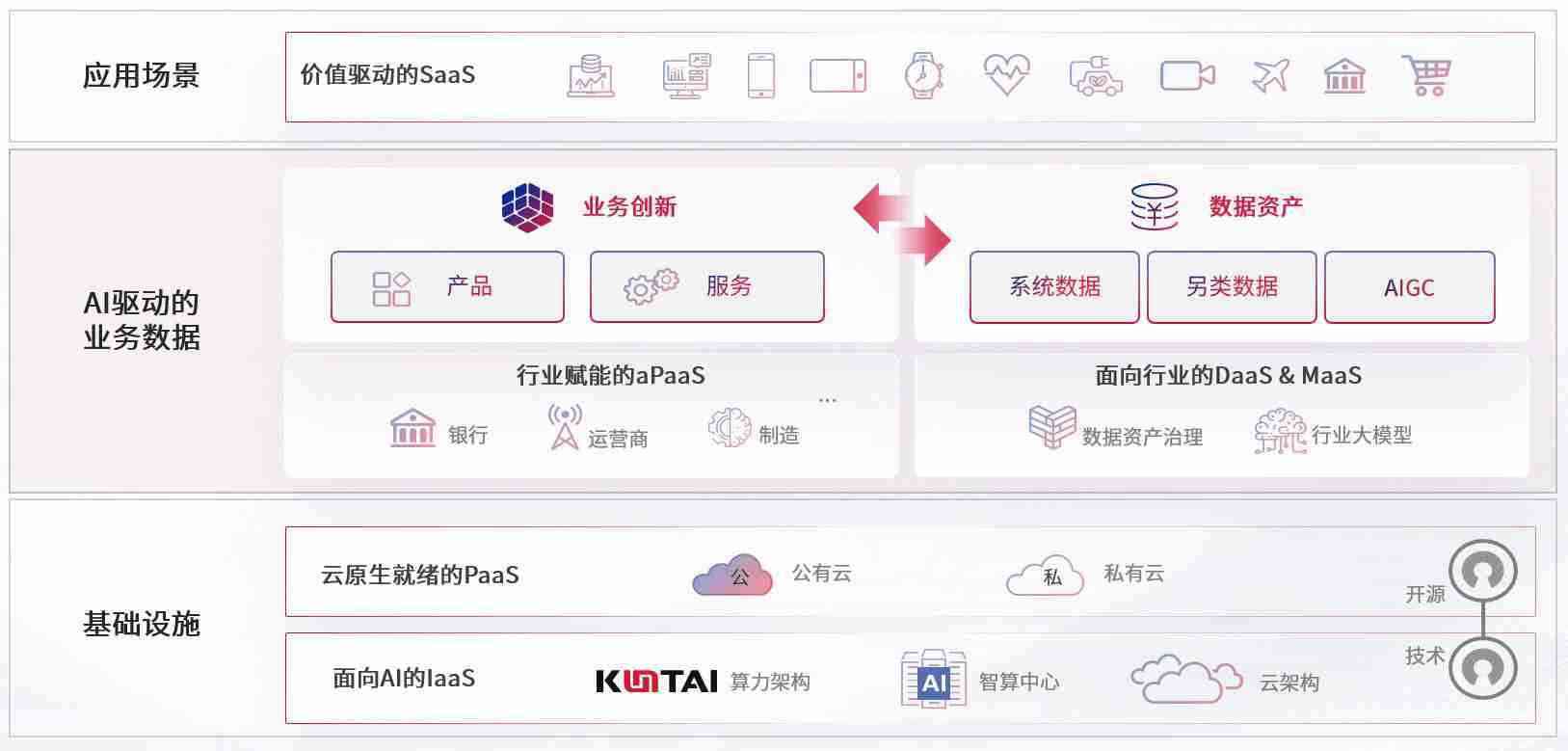 数字时代,,,围绕企业数字化转型的关键要素,,365钱包数码开创性的提出数云融合战略和技术体系框架,,,着力在云原生、、、数字原生、、AI原生和信创产业上架构产品和服务能力,,,为处在不同数字化转型阶段的快消零售、、、汽车、、、、金融、、、、医疗、、、、政企、、、、教育、、、运营商等行业客户提供泛在的敏捷IT能力和融合的数据驱动能力,,构建跨界融合创新的数字业务场景和新业务模式,,,,助力企业级客户建立面向未来的核心能力和竞争优势,,,,全面推动社会的数字化、、智能化转型升级。。